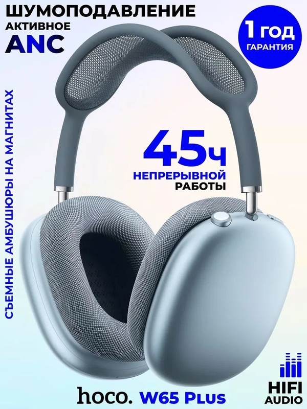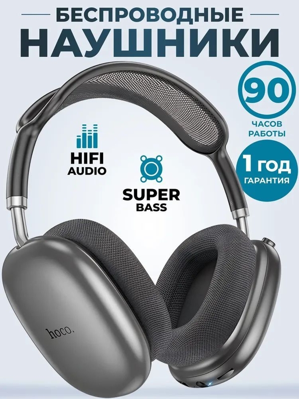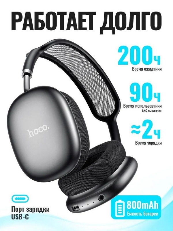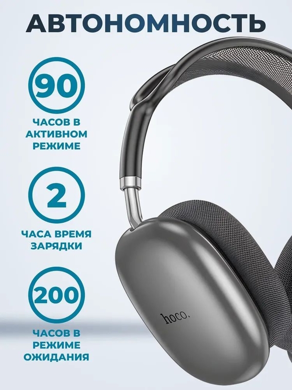 hoco Наушники беспроводные с микрофоном Hoco W35 MAX ANC, Bluetooth, 3.5 мм, ШУМОПОДАВЛЕНИЕ, серый
