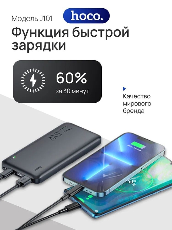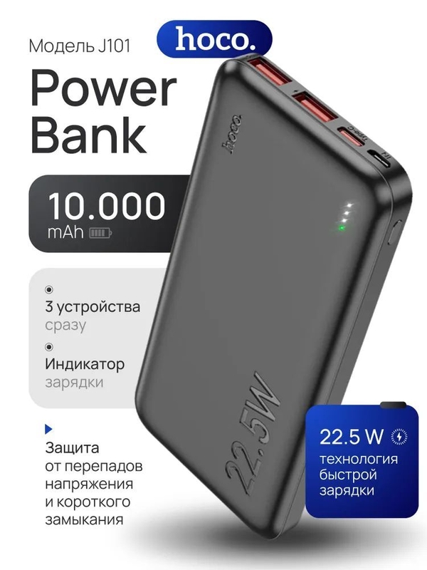 HOCO Внешний аккумулятор Power bank Повербанк с быстрой зарядкой J101, 10000 мАч, черный