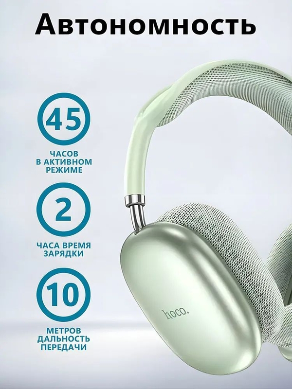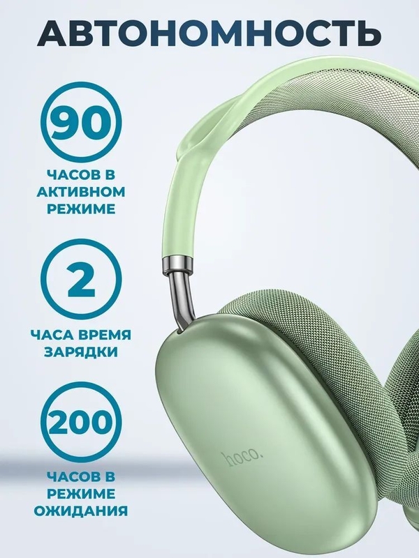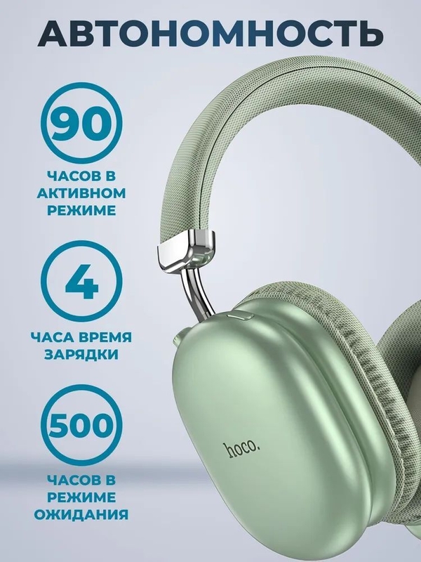 hoco Наушники беспроводные с микрофоном Hoco W35 MAX, Bluetooth, 3.5 мм, зеленый