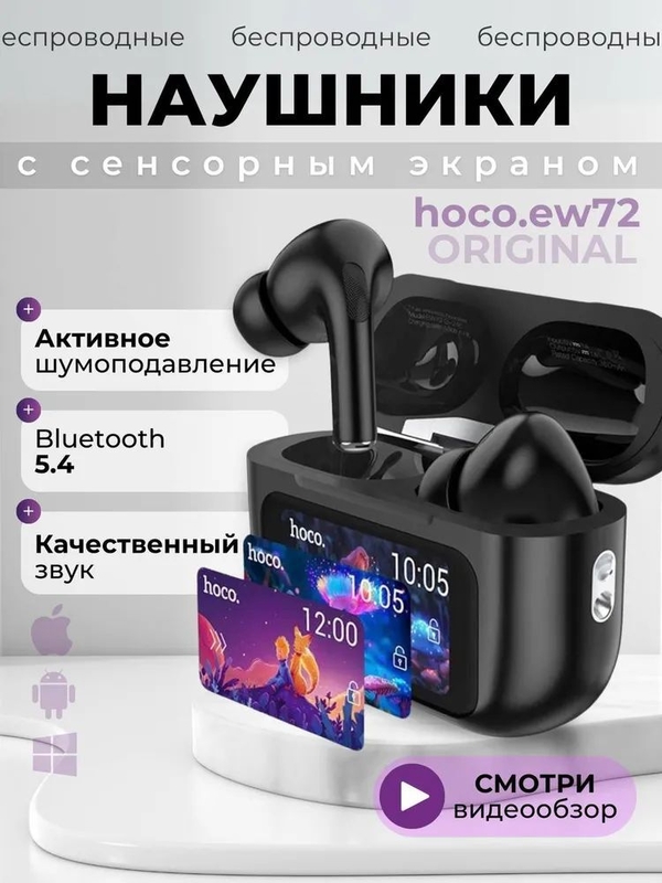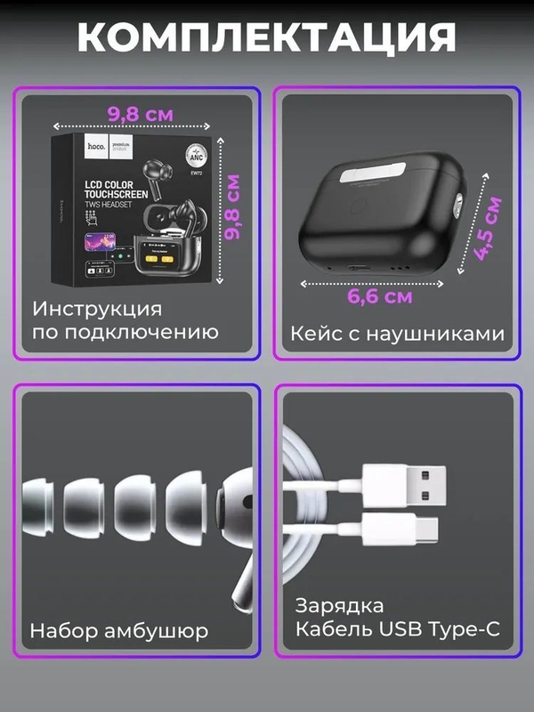 Беспроводные наушники Hoco EW72 с шумоподавлением в кейсе с сенсорным экраном черные,