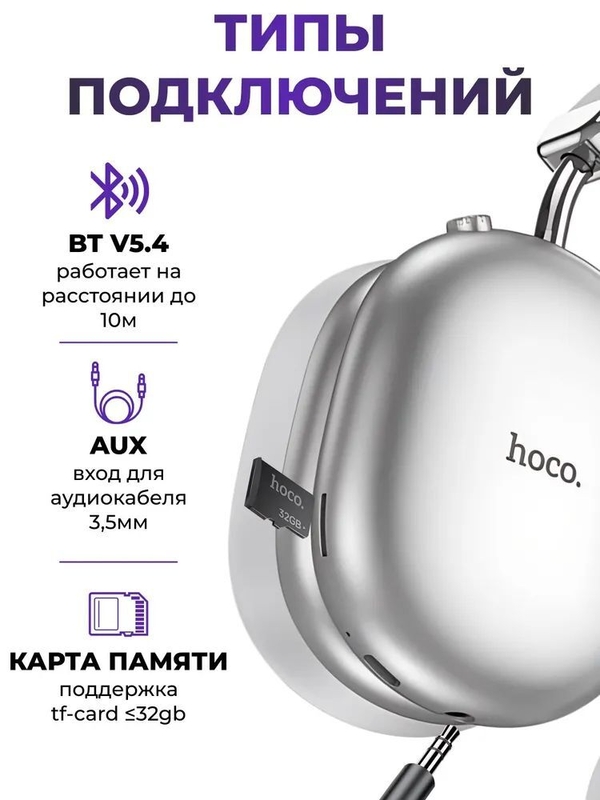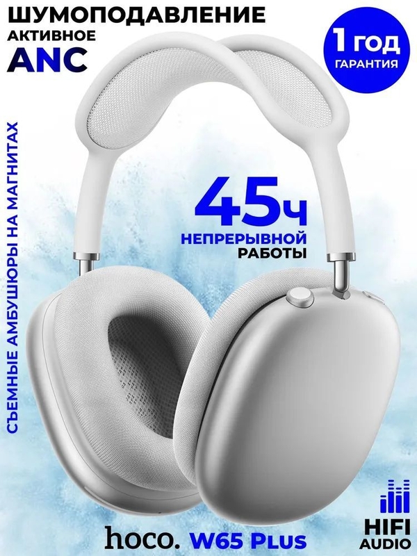 hoco Наушники с микрофоном Hoco W65 PLUS, Bluetooth, 3.5 мм, USB Type-C, Серебро