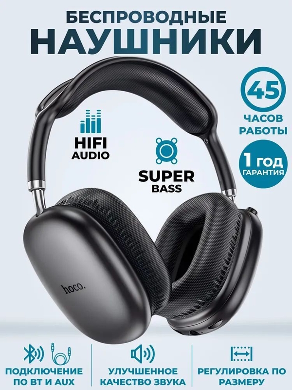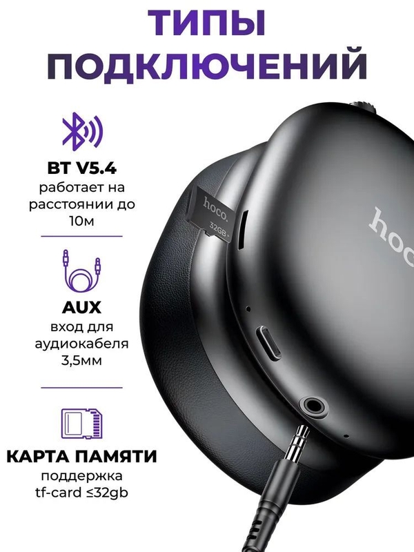 hoco Наушники беспроводные с микрофоном Hoco W35 MAX, Bluetooth, 3.5 мм, ШУМОПОДАВЛЕНИЕ