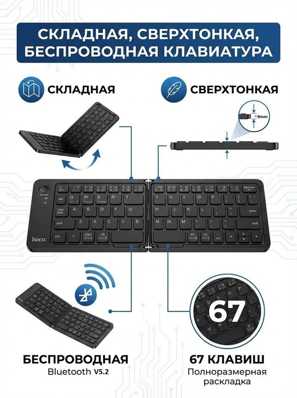 hoco Наушники с микрофоном Hoco W65, Bluetooth, 3.5 мм, USB Type-C, синий