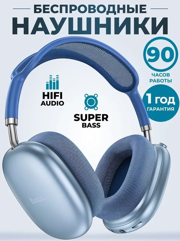 hoco Наушники беспроводные с микрофоном Hoco W35 MAX, Bluetooth, 3.5 мм, синий