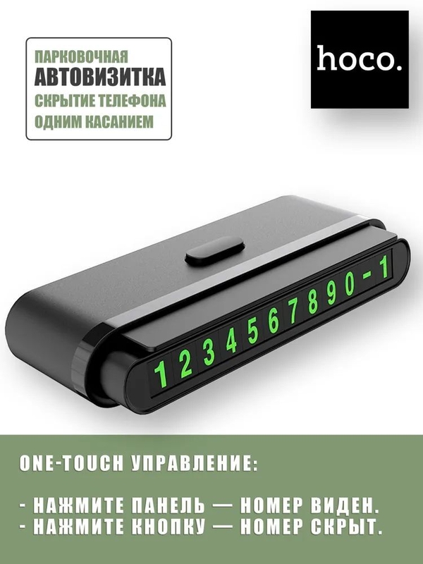 Автовизитка Hoco CPH19, в машину на приборную панель, видима в темноте, с функцией скрытия, черная