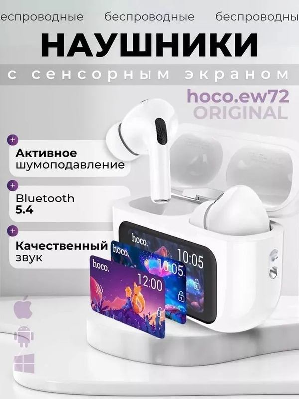 Беспроводные наушники Hoco EW72 с шумоподавлением в кейсе с сенсорным экраном белые,