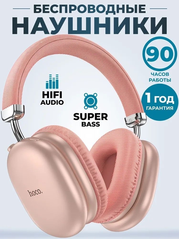 hoco Наушники беспроводные с микрофоном Hoco W35 MAX, Bluetooth, 3.5 мм, розовый